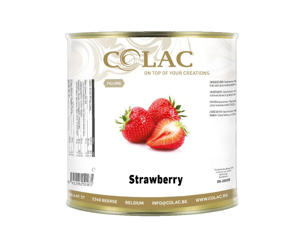 Colac Fruit Filling Origin: Belgium Packaging: 2.8kg Flavors: Blueberry, Raspberry, Mango, Apple, Strawberry, Dark Cherry.